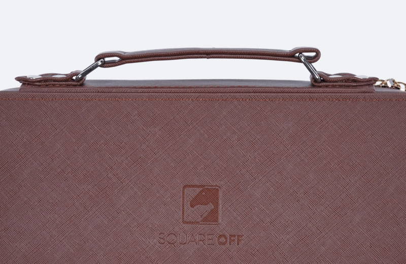 Premium quality faux leather material with an elegantly embossed Square Off logo exterior